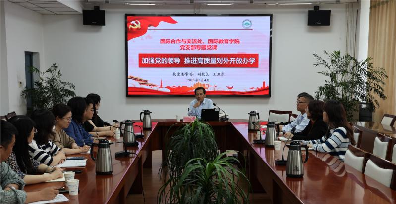 5月4日,校党委常委、副校长王卫东为国际合作与交流处、国际教育学院党支部全体人员上了一堂题为《加强党的领导,推进高质量对外开放办学》的主题教育专题党课。