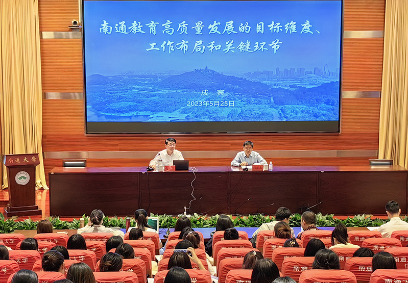 5月25日下午,南通市委教育工委书记、南通市教育局党组书记、局长成宾应邀来校,为我校周建忠名师工作室做题为《南通教育高质量发展的目标维度、工作布局和关键环节》的专题讲座。