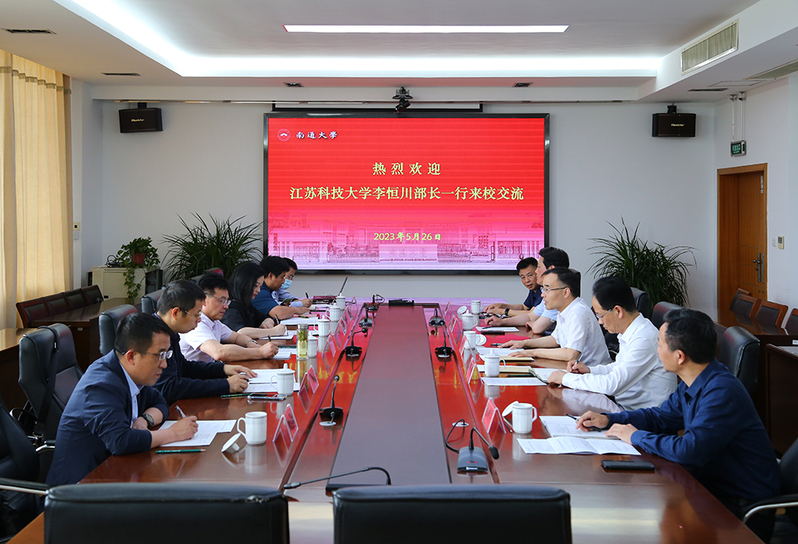 5月26日下午,江苏科技大学党委常委、组织部部长李恒川一行来我校调研交流。校党委常委、副校长陆俊杰接待了来宾。校党委常委、组织部部长吴如高出席交流座谈会。