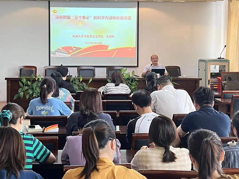 5月30日下午,马克思主义学院教授吴日明受邀为财务处全体党员上题为《深刻把握“三个务必”的科学内涵和价值意蕴》的专题党课。财务处副处长朱爱红主持活动。
