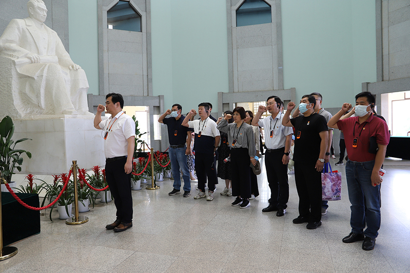 在周恩来总理汉白玉雕像前,全体党员面对党旗,举起右手,集体重温入党誓词。大家在讲解员的引导下参观了周恩来纪念馆,总理用过的书桌、穿过的中山装、批阅过的文件......一张张图片和一件件文物背后那触动心灵的故事,都真实地记录了周恩来总理波澜壮阔的一生,大家不时驻足、久久凝视,深切感受周恩来总理崇高坚定的理想信念、对党无限忠诚的政治品格、一心为民的公仆情怀、实事求是的工作作风。