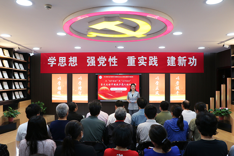 徐晓艳以《继承和发扬中国共产党的伟大人格力量》为题,从中国共产党伟大人格力量的形成、中国共产党伟大人格力量的丰富内涵、中国共产党伟大人格力量的精神气质三个方面为全体党员讲述了一百多年来中国共产党人用优良作风、革命精神和崇高风范凝结而成的人格力量。徐晓艳指出,共产党的伟大人格力量始终是党团结人民、凝聚人心的最直观、最感人、最具魅力的力量,也必将是我们党面对新时代严峻挑战和各种风险,始终立于不败之地、永远站在历史制高点的伟大力量。