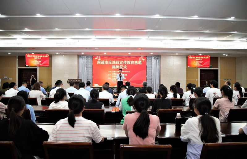 与会领导共同为“南通市反洗钱宣传教育基地”揭牌。