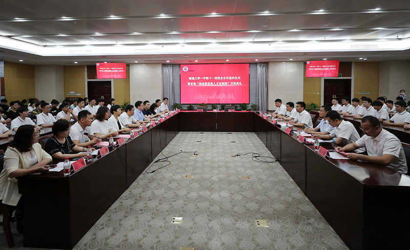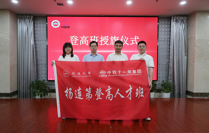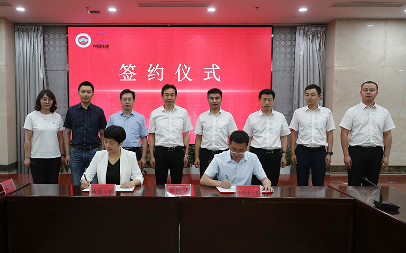 6月17日下午,南通大学——中铁十一局校企合作签约仪式暨首届“杨连第登高人才定制班”开班典礼在我校举行。中铁十一局集团有限公司人力资源部部长宋大勇,校党委常委、副校长吉明明,校党委常委、副校长施佺参加活动。