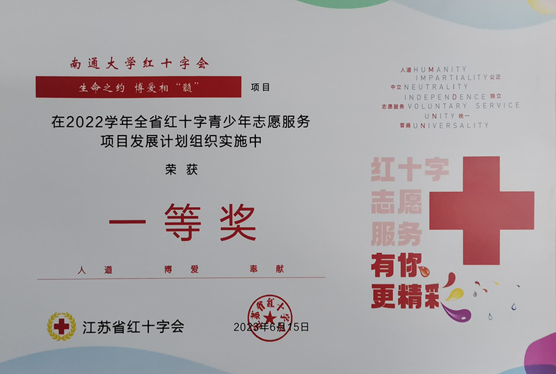 近日,江苏省红十字会公布了2022年度省红十字青少年志愿服务项目发展计划项目评选结果。我校红十字会“生命之约,博爱相‘髓’”项目被评为一等奖。