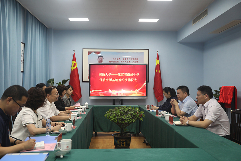 6月25日下午,校党委书记尚庆飞一行前往江苏省南通中学举行“南通大学优质生源基地”签约授牌仪式。校党委常委、组织部部长、党办校办主任吴如高参加活动。