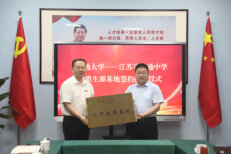 我校与江苏省南通中学举行优质生源基地签约授牌仪式。