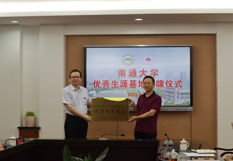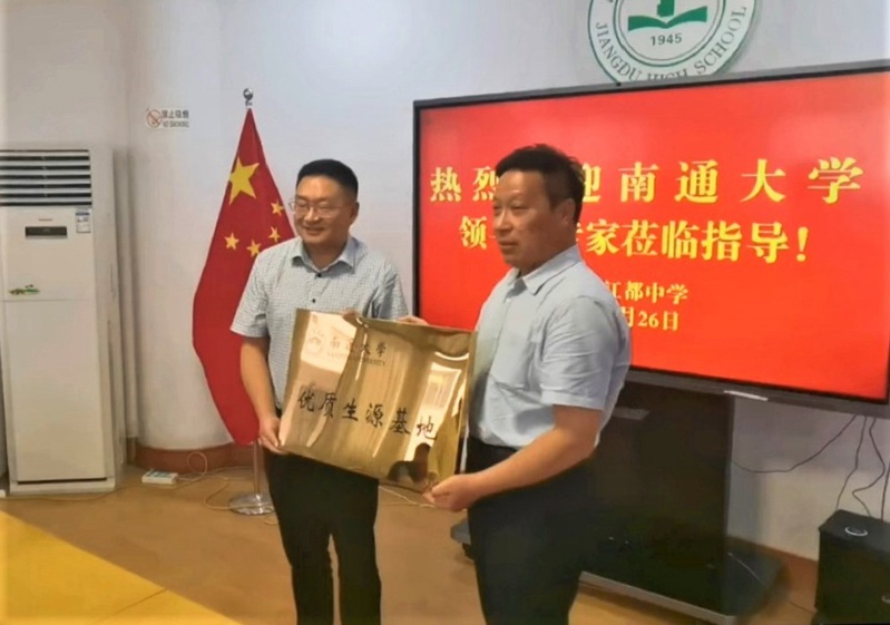 又讯 6月26日下午,校党委副书记、校长杨宇民一行前往江苏省江都中学举行“南通大学优质生源基地”签约授牌仪式。