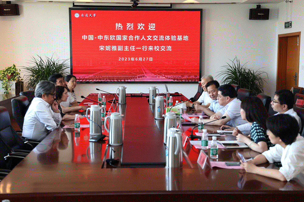 6月27日下午,中国-中东欧国家合作人文交流体验基地副主任、前匈牙利驻华大使馆教育文化参赞Szonja(宋妮雅)一行来校访问。南通市委副书记、宣传部部长沈雷与校党委常委、副校长王卫东共同会见了来宾。