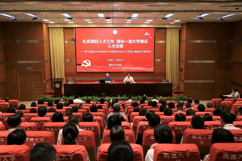 7月3日下午,我校举办学习贯彻习近平新时代中国特色社会主义思想主题教育专题党课,校党委书记尚庆飞以《扎实做好人才工作 强化一流大学建设人才支撑》为题讲授党课。校党委常委、组织部部长吴如高主持党课。省委主题教育第二十一巡回指导组相关成员列席党课。