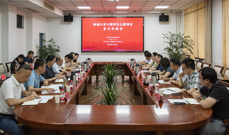 7月26日下午,我校组织召开七期学生公寓建设项目首次对接会。校党委副书记、校长杨宇民出席会议并致辞。江苏省住房和城乡建设厅政府投资工程集中建设管理处副处长蒋伟、江苏省公建中心副总经理李再莅等出席会议。
