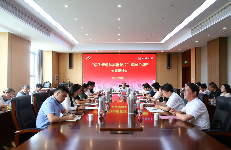 校领导班子成员及党委宣传部、党委教师工作部、党委研究生工作部、党委学生工作部、团委、保卫处、信息化中心等相关职能部门负责人围绕学生管理与舆情管控工作开展深入研讨。杏林学院(启东校区管委会)党委副书记、院长朱晓阳介绍了学院转设事件相关情况。