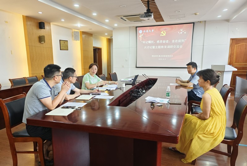 8月3日上午,南通大学教育部·江苏省神经再生重点实验室党总支开展“牢记嘱托、感恩奋进、走在前列”大讨论暨主题教育调研成果交流会。