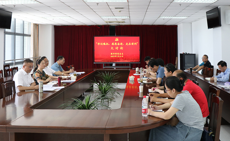 7月31日上午,图书馆党总支组织开展“牢记嘱托、感恩奋进、走在前列”大讨论。党总支书记徐宇红主持会议。