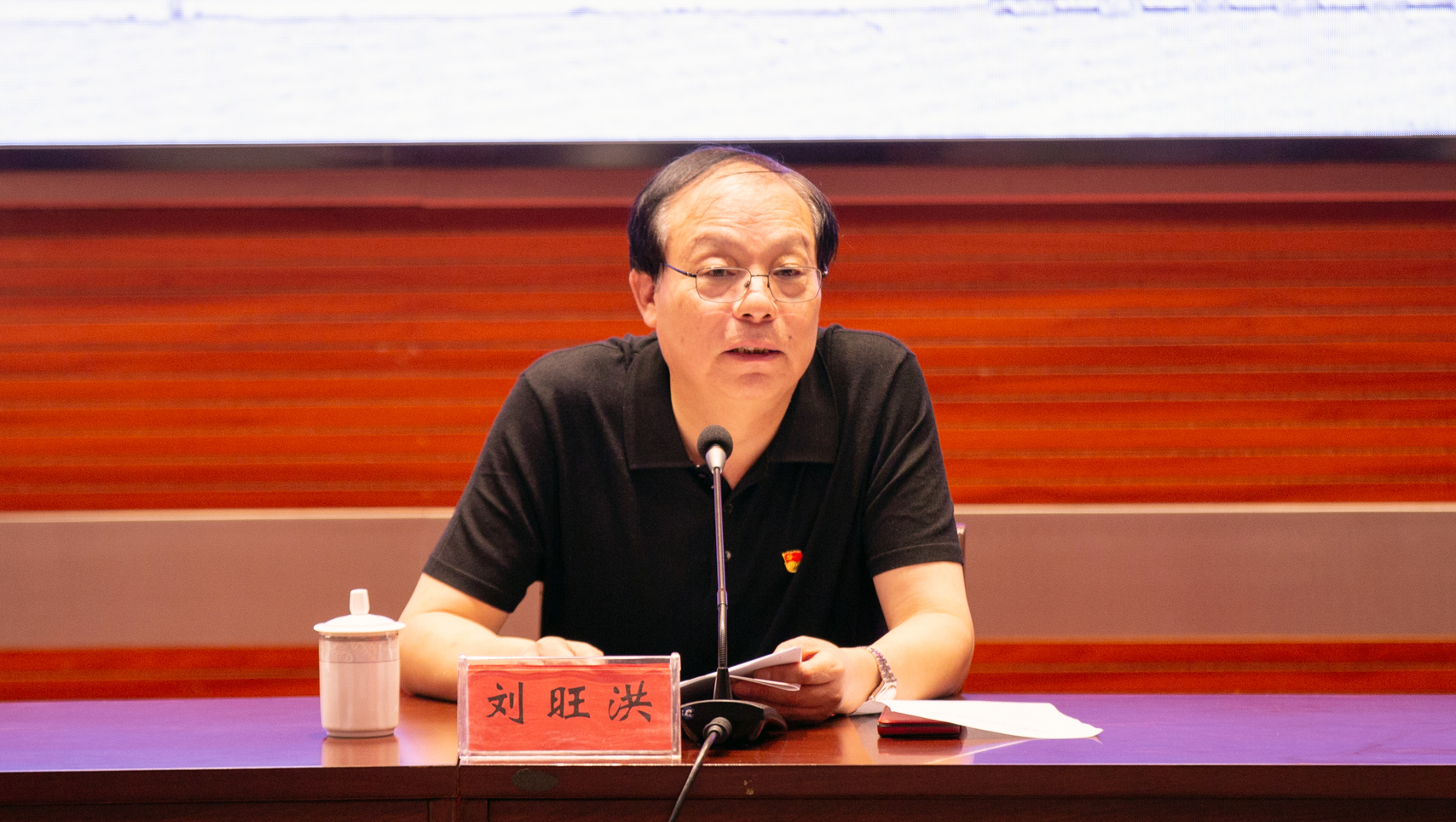 省委第二十一巡回指导组组长、南京审计大学原党委副书记、校长刘旺洪作指导讲话