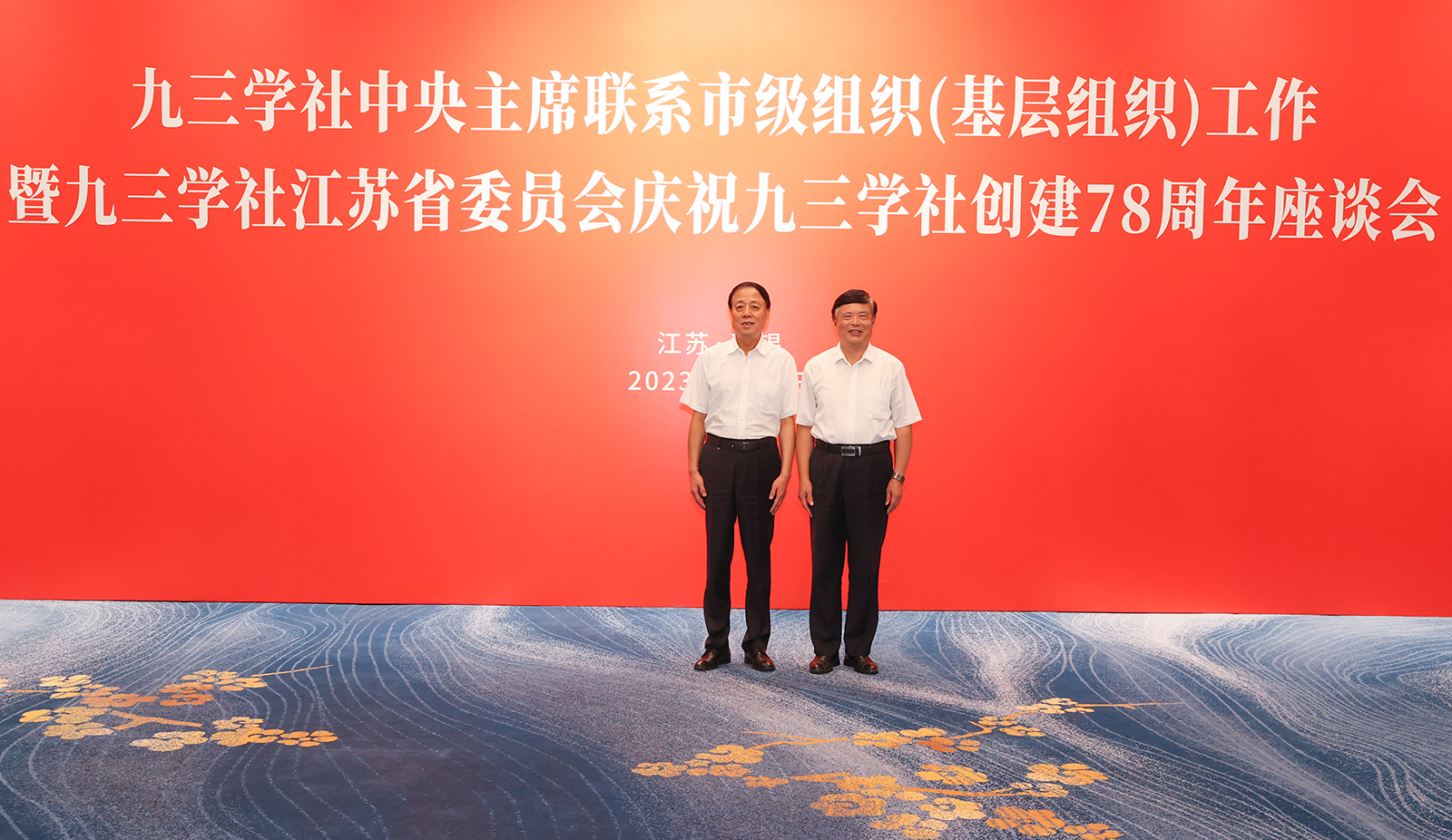 9月3日上午,九三学社中央主席联系市级组织(基层组织)工作暨九三学社江苏省委员会庆祝九三学社创建78周年座谈会在无锡举行,全国人大常委会副委员长、九三学社中央主席、中国科学院院士武维华出席座谈会,江苏省政协副主席、江苏省社会主义学院院长、九三学社江苏省委员会主委周岚主持座谈会,全国政协委员、九三学社中央委员、江苏省委员会副主委、我校施卫东研究员参加座谈会。