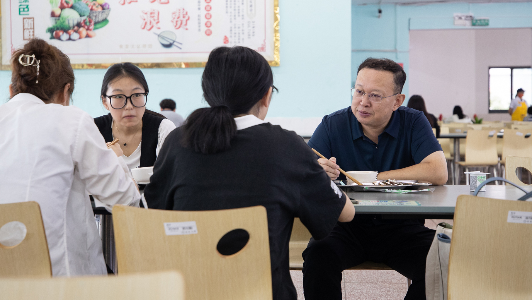 校党委书记尚庆飞与学生在餐厅进行交流