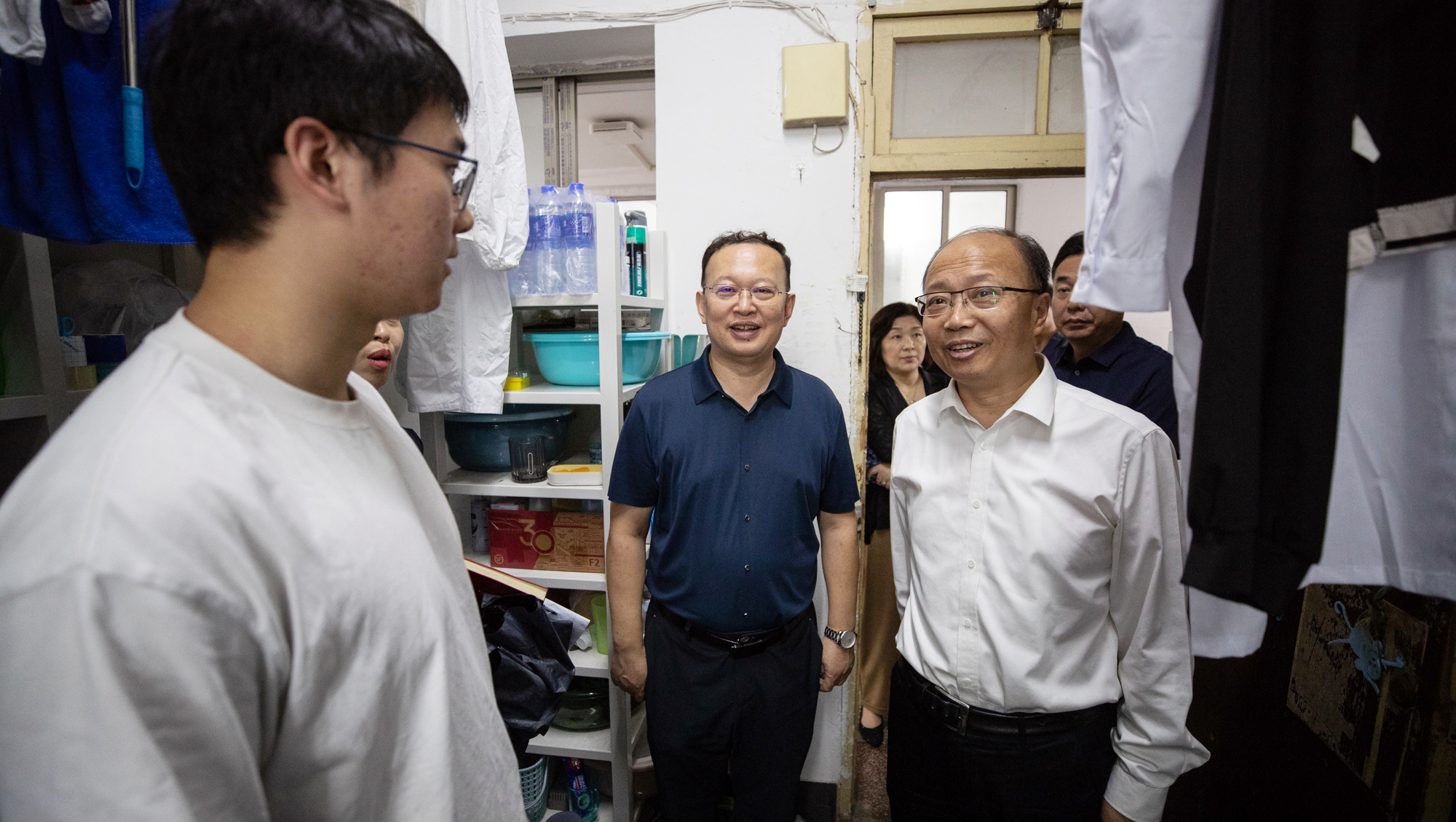 校党委书记尚庆飞,校党委副书记、校长杨宇民深入启秀校区学生宿舍看望新生