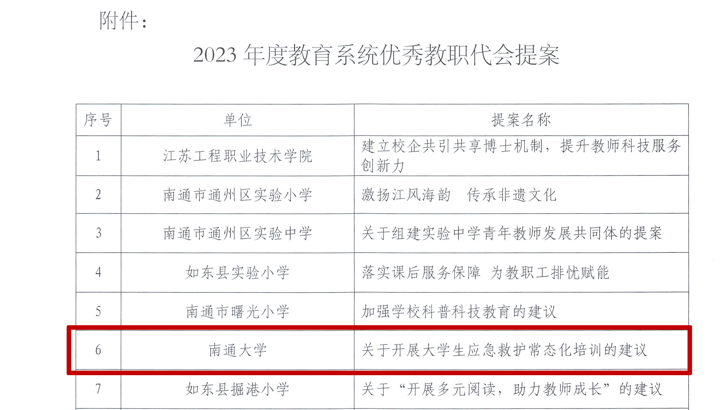 全市优秀教职代会提案征集推选活动由南通市教育工会主办,旨在示范带领更多教职工重视支持教职代会提案工作,为学校高质量发展建言献策,为推进中国式现代化南通新实践贡献智慧和力量。