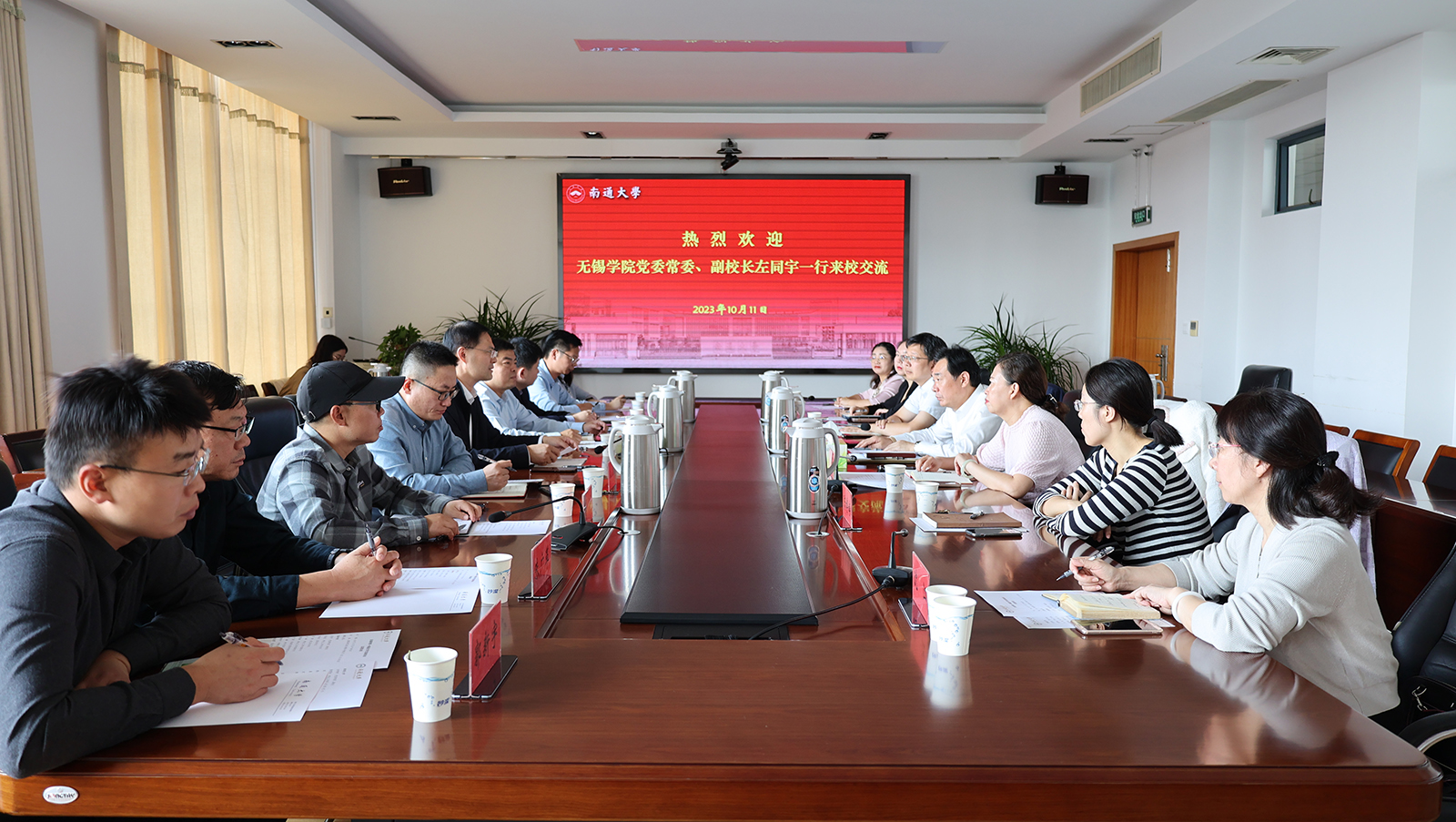 10月11日上午,无锡学院党委常委、副校长左同宇一行来我校交流。校党委常委、副校长吉明明接待了来宾。