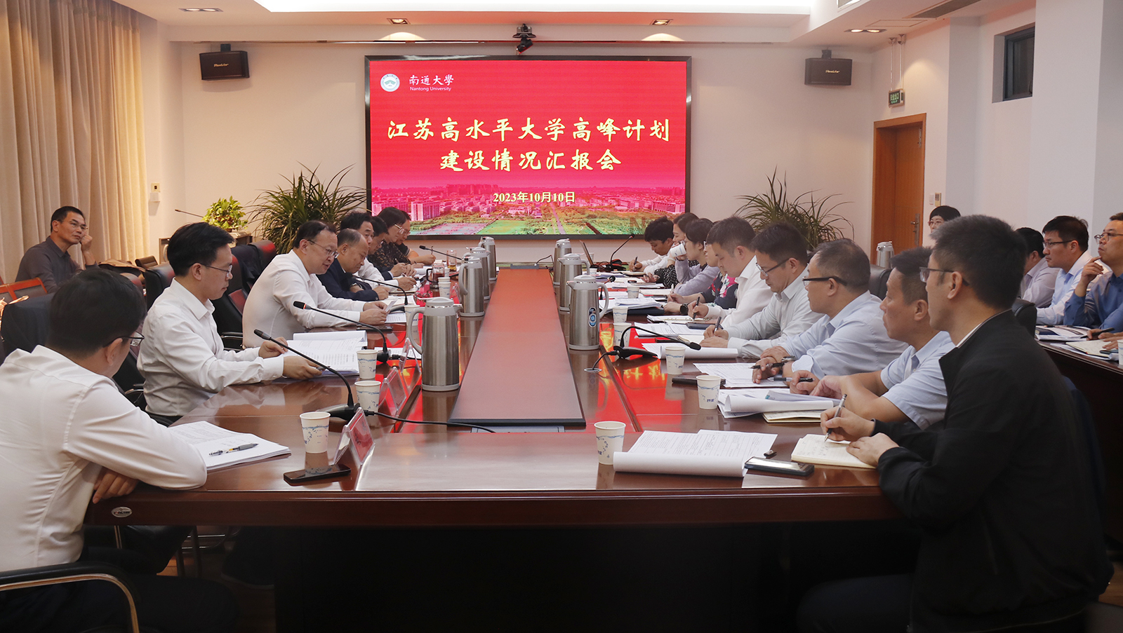 10月10日下午,我校召开江苏高水平大学高峰计划建设情况汇报会。校党委书记尚庆飞,校党委副书记、校长杨宇民出席会议并讲话,全体在通校领导参加会议,会议由校党委常委、副校长施佺主持。