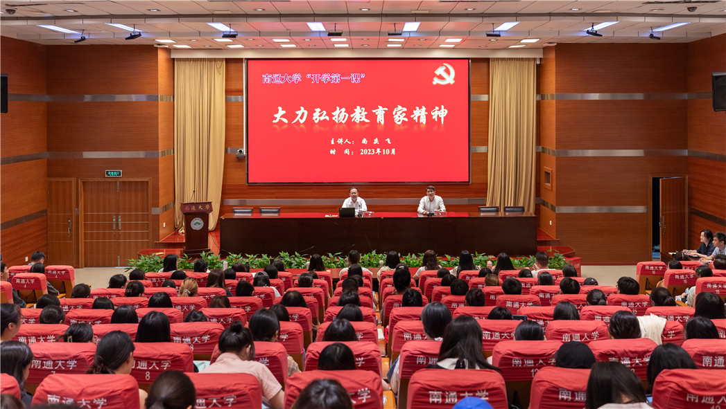 教师节前夕,习近平总书记致信全国优秀教师代表,强调要大力弘扬教育家精神,勉励广大教师和教育工作者为强国建设民族复兴伟业作出新的更大贡献。为进一步深入学习贯彻习近平总书记教师节重要指示精神,10月18日下午,校党委书记尚庆飞以“大力弘扬教育家精神”为主题,面向学校全体师范生讲授“开学第一课”。校党委常委陶锋出席活动。