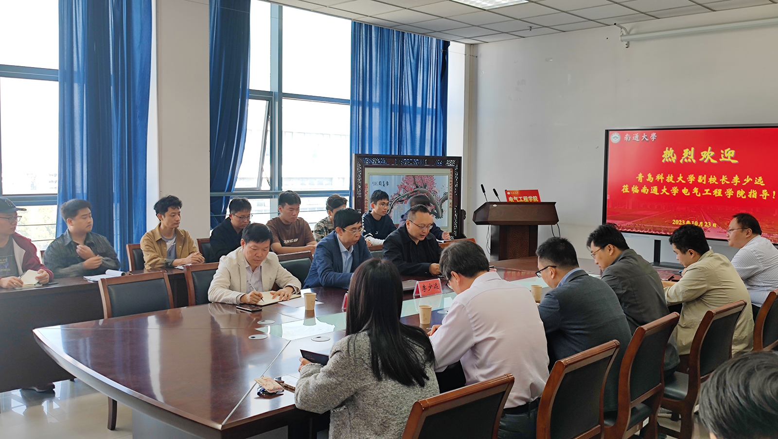 10月23日上午,青岛科技大学党委常委、副校长,自动化教指委副主任李少远一行来我校交流。校党委常委、副校长华亮接待了来宾。