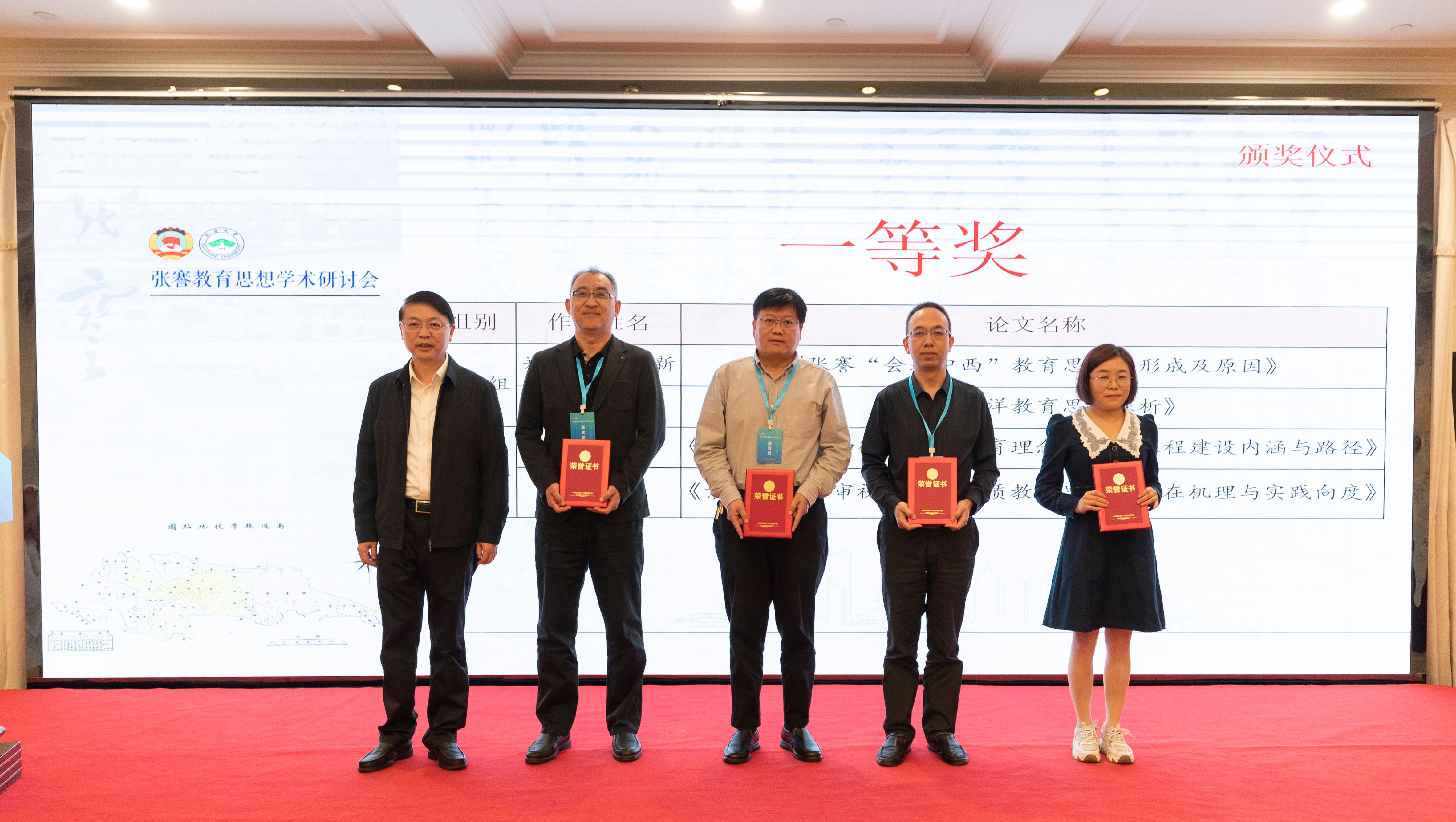 南通市委教育工委书记、南通市教育局局长成宾为一等奖论文作者颁奖