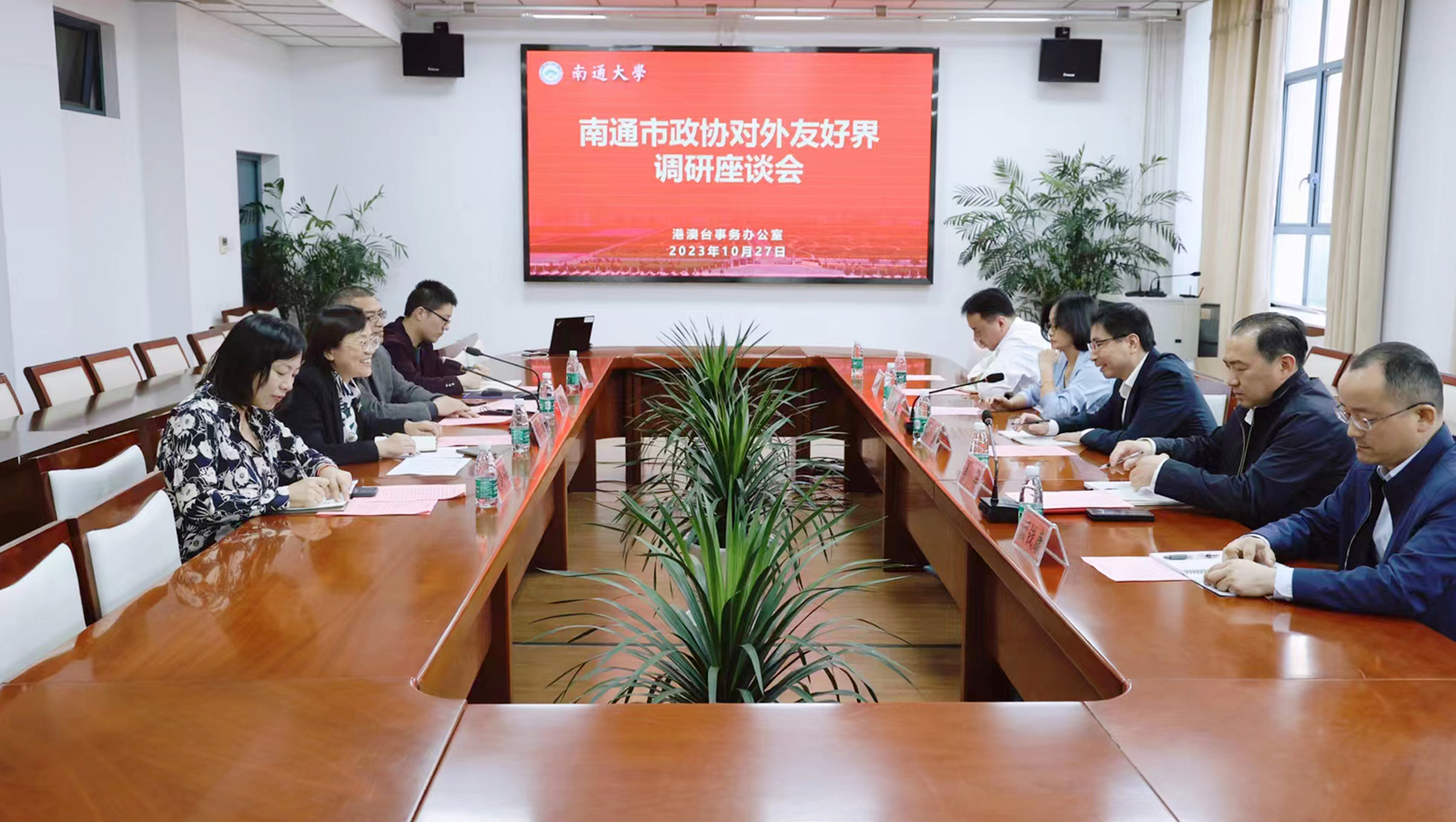 10月27日下午, 南通市政协常委、市政府港澳事务办公室主任潘强,南通市政协委员、江苏明天互联网大健康科技有限公司董事长姜华,市外办副主任侯艳秋等一行来校调研“南通大学港澳青少年教育基地”实施情况并与在校港澳学生代表座谈。副校长陈玉娟出席座谈会。
