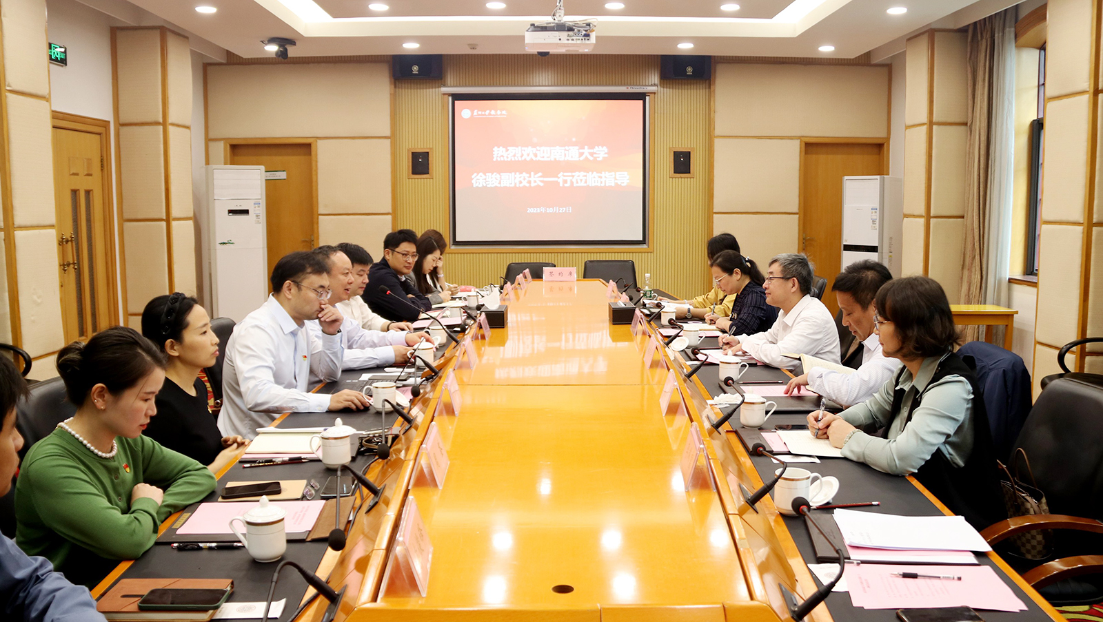 为借鉴兄弟高校本科教育教学改革举措及审核评估准备工作,10月27日,校党委常委、副校长徐骏带队赴苏州大学教务处学习调研。苏州大学党委常委、副校长姚建林接待了我校一行。