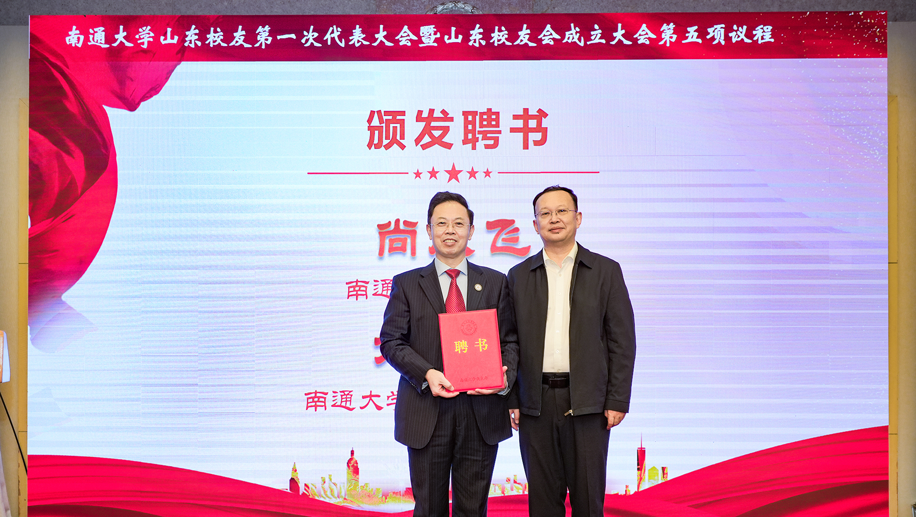 尚庆飞代表学校和南通大学校友会对山东校友会的成立表示祝贺,向与会校友通报了学校最新的建设发展概况和未来发展蓝图。他指出,山东校友们立足山东、扎根山东,在各自岗位上辛勤耕耘,助力山东经济社会高质量发展,以出色的成绩为母校赢得了声誉、唱响了品牌,母校感到无比骄傲和自豪。他向山东校友会及校友提出三点希望:一是希望不断健全运行机制,积极开展内涵丰富、形式多样的校友活动,促进不同年龄、不同专业、不同工种的校友们广泛开展沟通与交流,切实做到融情融智、聚心聚力;二是希望不断密切与母校的沟通联系,积极拓宽交流渠道、搭建合作平台,以母校为中轴线,探索“母校+校友会+校友”的共建共享新模式,实现横向联合、相互赋能、合作共赢;三是希望能够持续保持脚踏实地、务实拼搏的精神,不断传承弘扬“学必期于用,用必适于地”的办学理念,紧密围绕国家战略布局,精准聚焦地方发展需求,在推进中国式现代化“山东实践”中做出更多“通大贡献”。