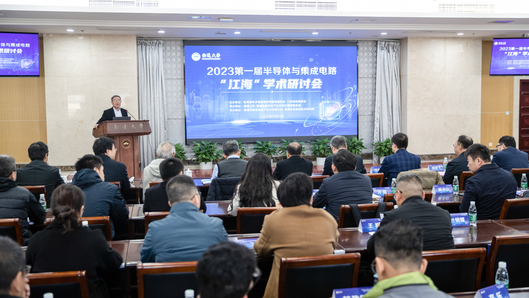 11月21日,2023 第一届半导体与集成电路“江海”学术研讨会在我校召开。中国科学院院士、浙江大学杨德仁教授,校党委书记尚庆飞,校党委副书记、校长杨宇民,南京邮电大学党委书记郭宇锋教授,南京大学陈坤基教授,东南大学时龙兴教授,校党委常委、党办(校办)主任、组织部部长吴如高,南通高新区党工委副书记刁玉芬等出席开幕式。校党委常委、副校长徐骏主持开幕式。