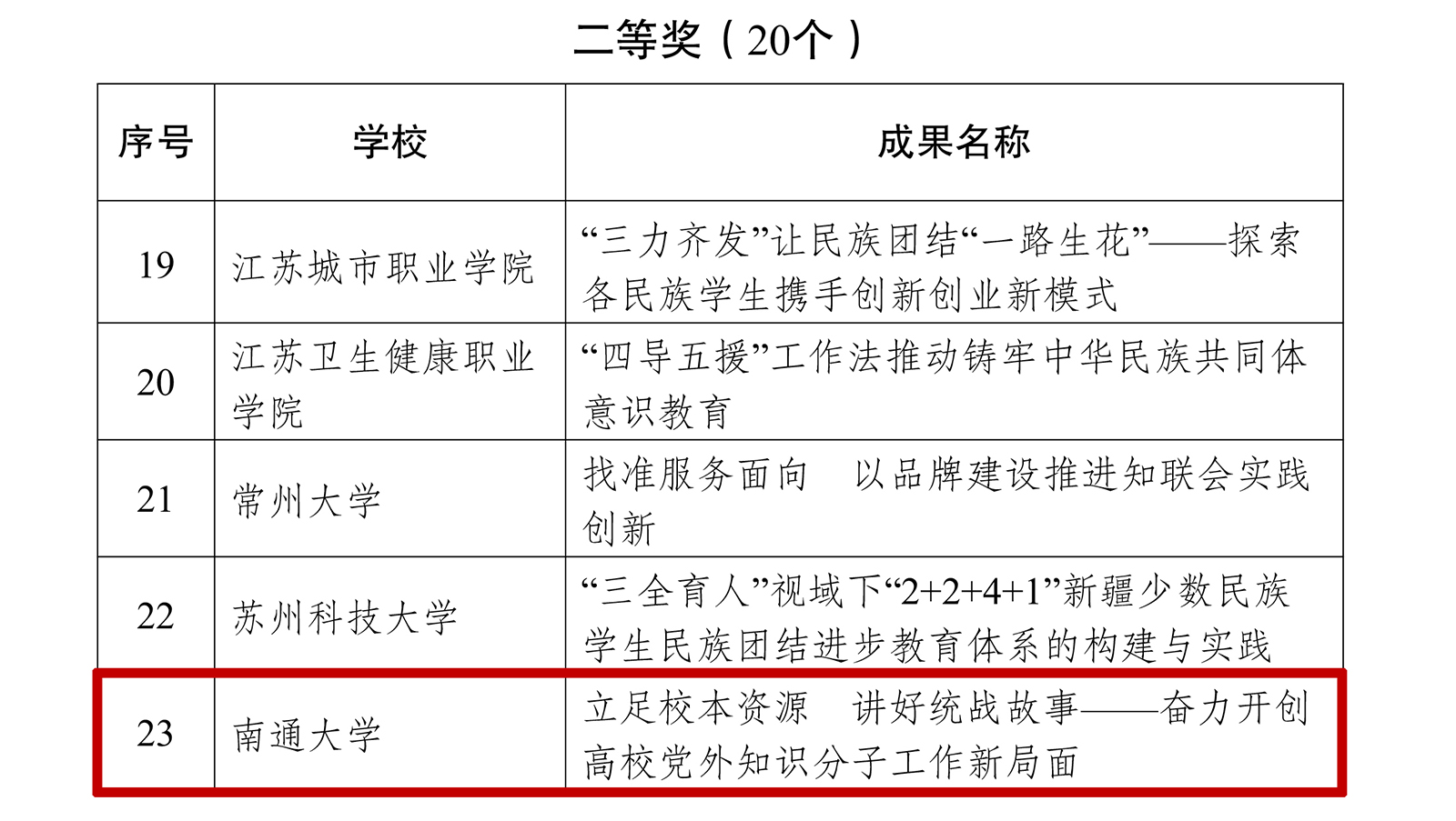 近日,江苏省委教育工委公布了2023年高校统战工作实践创新成果遴选结果,我校申报的案例荣获成果实践创新二等奖。