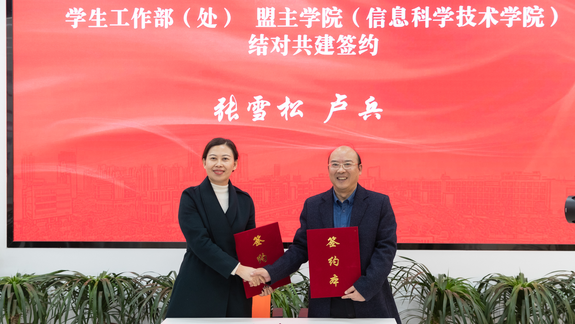 尚庆飞、吉明明共同为融园“一站式”学生社区揭牌,吴如高宣读了《关于聘任南通大学“一站式”学生社区盟主学院的决定》,与会领导共同为9个首批盟主学院颁发聘书。校党委学生工作部部长张雪松主持活动,她代表学生工作部党支部、信息科学技术学院党委书记卢兵代表融园“一站式”学生社区盟主学院进行党建联盟结对共建签约。