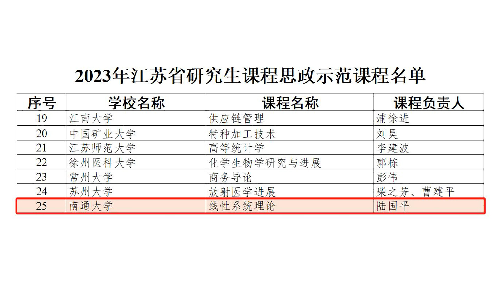 近日,省教育厅公布2023年江苏省研究生课程思政示范课程遴选结果。我校陆国平教授教学团队的研究生课程《线性系统理论》获评江苏省研究生课程思政示范课程。