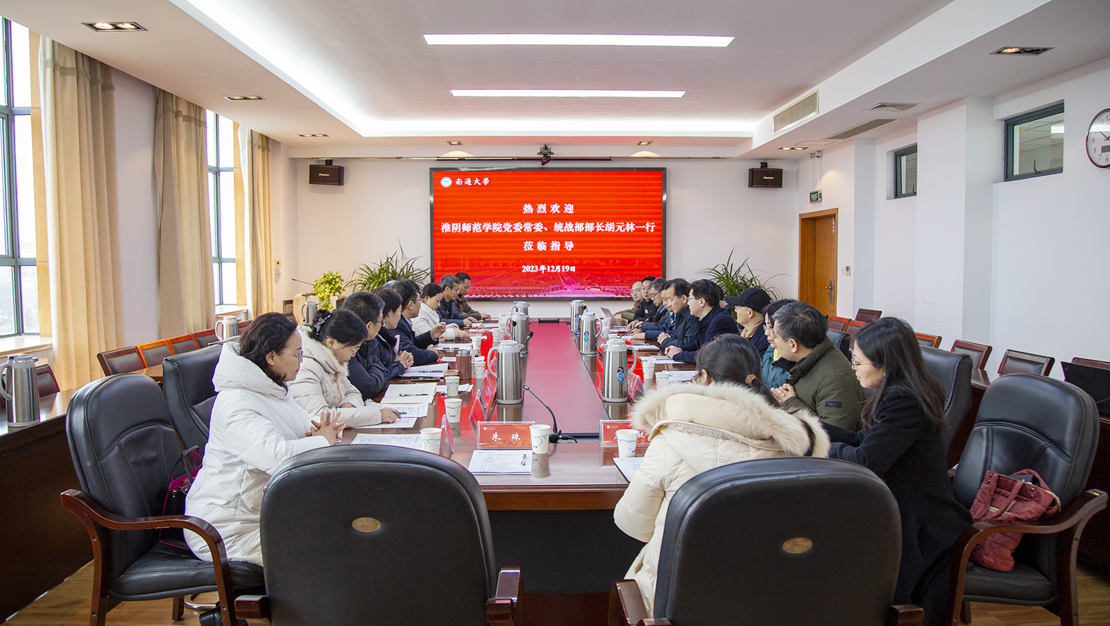 12月19日上午,淮阴师范学院党委常委、统战部部长胡元林一行来校交流。校党委副书记王卫东,校党委常委、统战部部长朱城出席座谈会。
