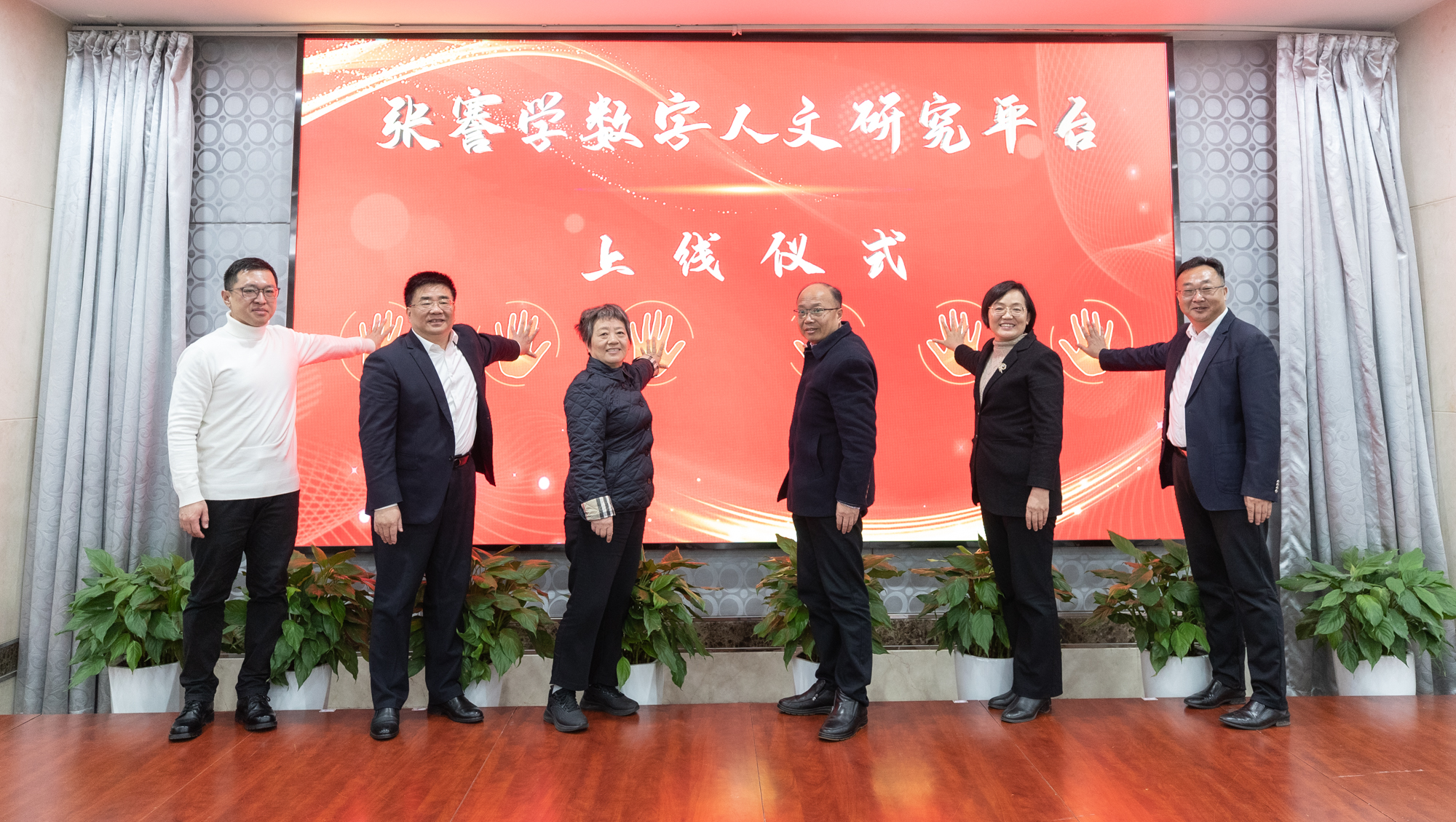 与会领导共同按下张謇学数字人文研究平台上线启动键