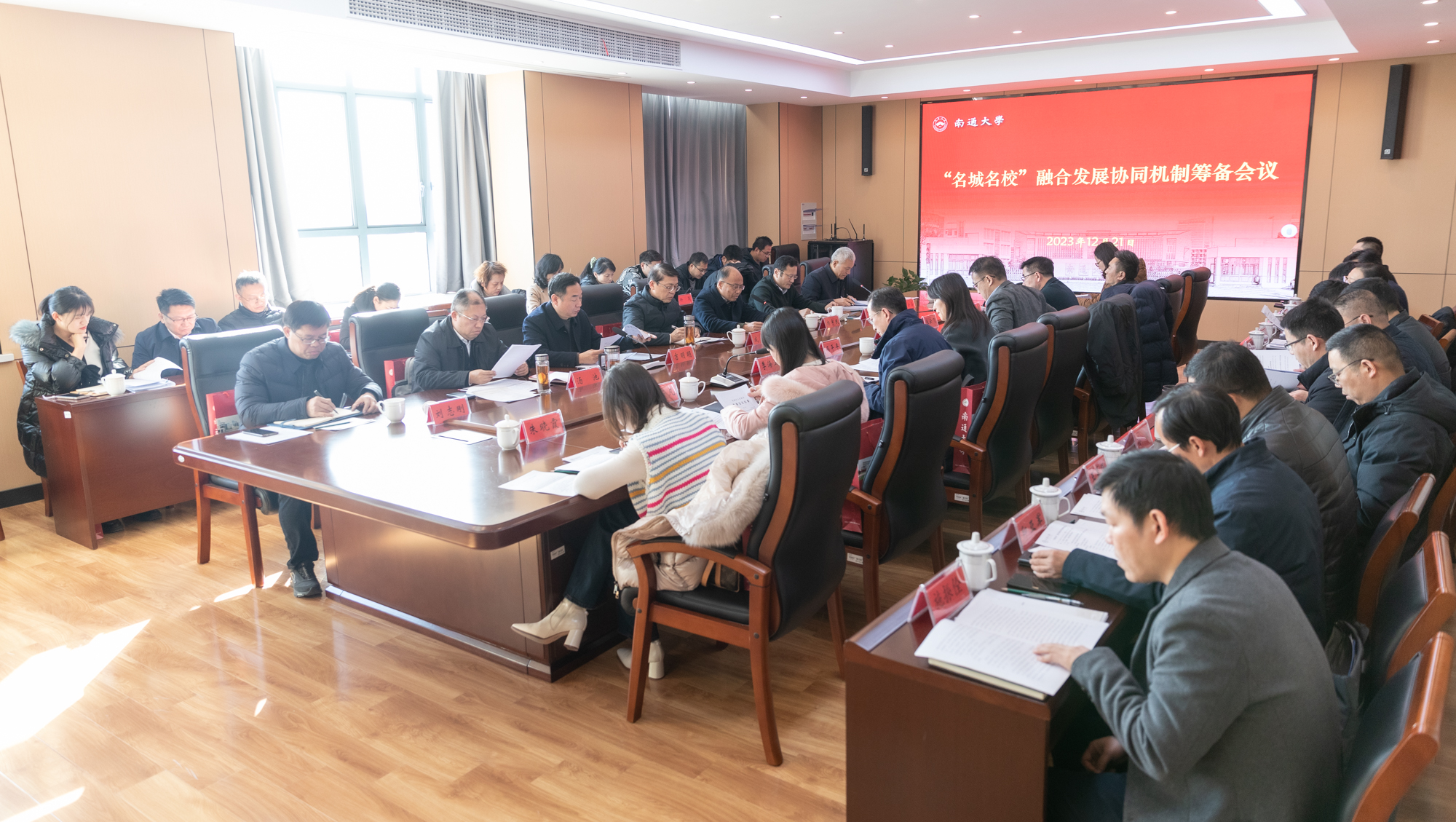 12月21日,“名城名校”融合发展协同机制筹备会在我校召开。校党委副书记、校长杨宇民出席会议并致辞。校党委常委、副校长吉明明,南通市教育局党组书记、局长成宾出席会议。