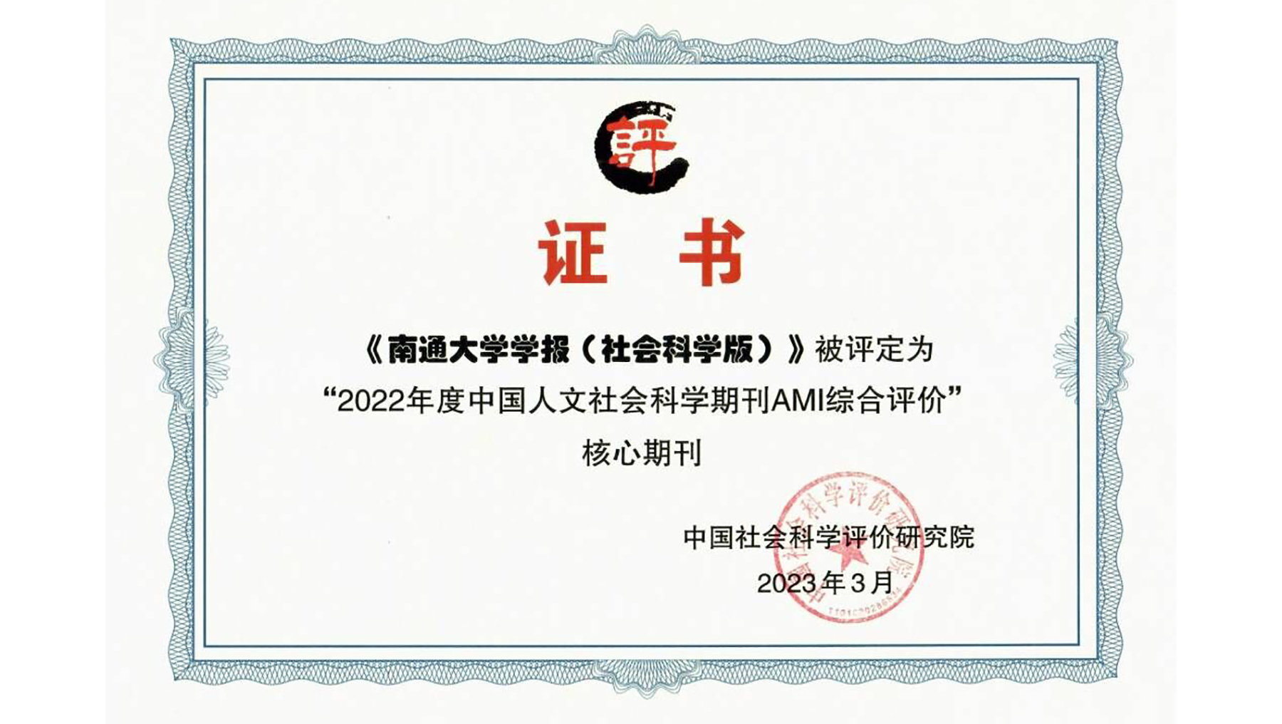 《南通大学学报(社会科学版)》入选2022年度中国人文社会科学期刊AMI综合评价核心期刊