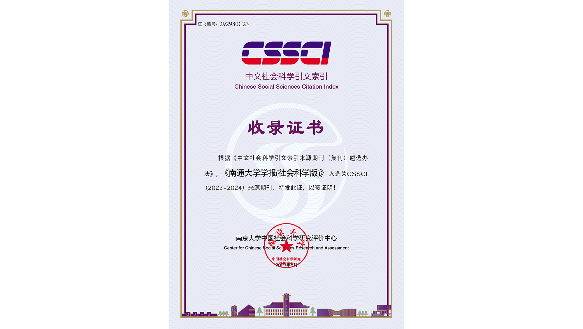 《南通大学学报(社会科学版)》入选CSSCI(2023—2024)来源期刊