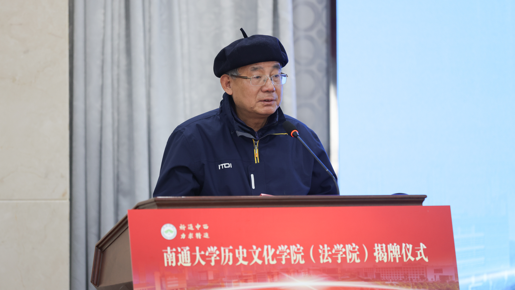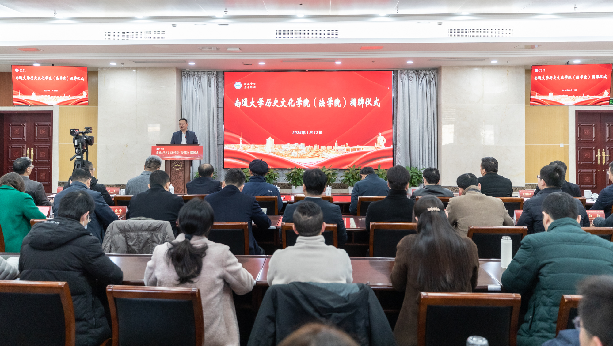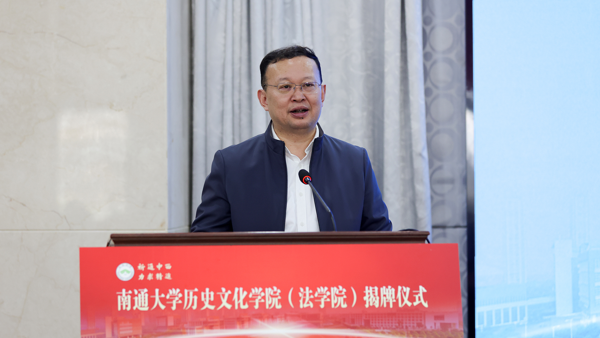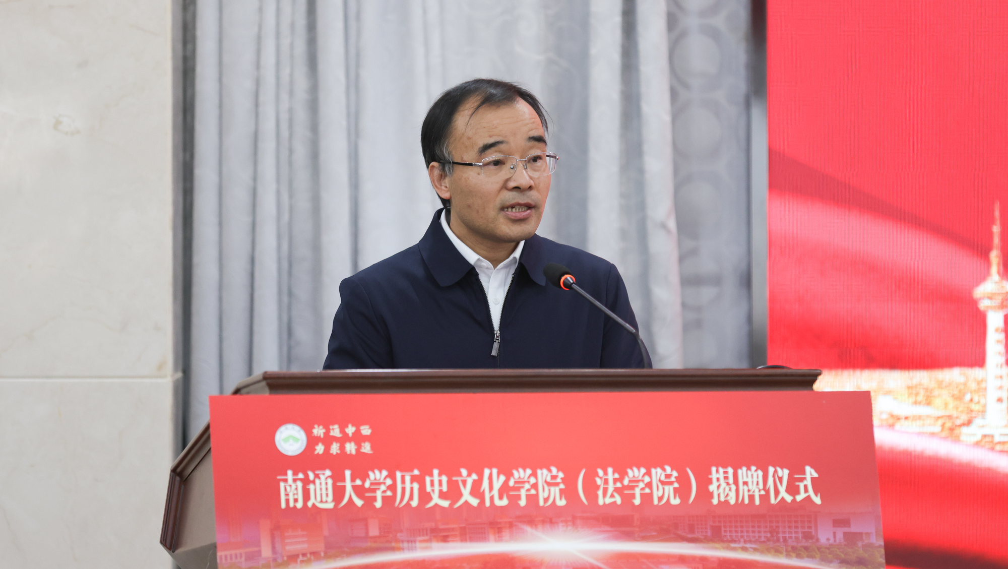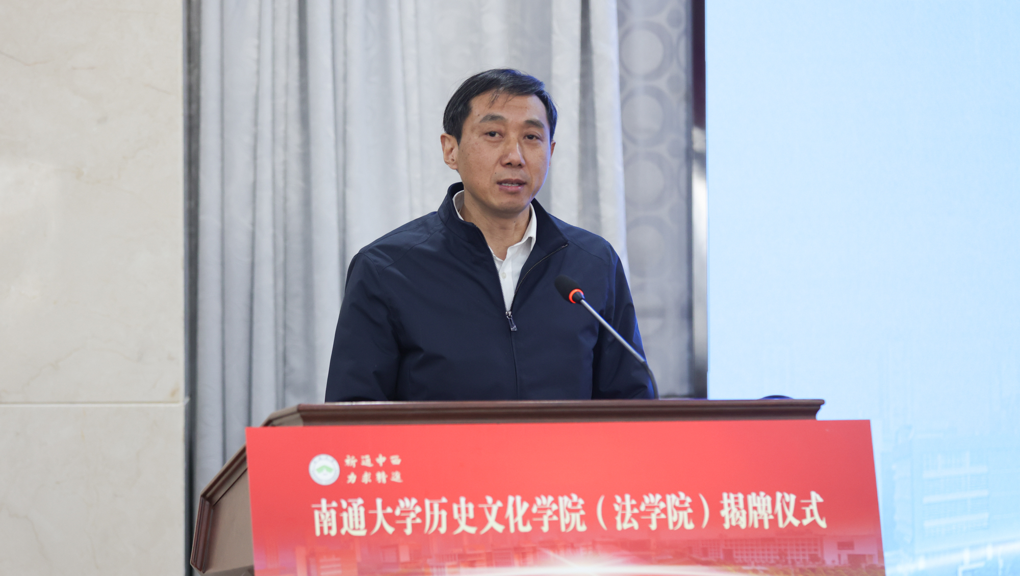 1月12日上午,我校举行历史文化学院(法学院)揭牌仪式。江苏省历史学会会长、扬州大学原副校长周新国教授,江苏省法学会秘书长高源在仪式上致辞。校党委书记尚庆飞与校党委副书记、校长杨宇民共同为“南通大学历史文化学院(法学院)”揭牌。校党委常委、副校长陆俊杰主持仪式。校党委常委、组织部部长吴如高,校党委常委、宣传部部长陶锋,校党委常委、统战部部长朱城出席仪式。