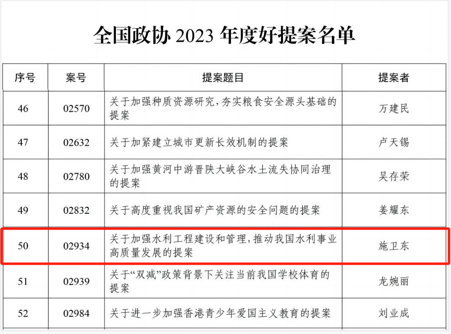 1月30日,全国政协公布2023年度好提案名单。全国政协委员、我校施卫东研究员提交的《关于加强水利工程建设和管理,推动我国水利事业高质量发展的提案》获评“好提案”。