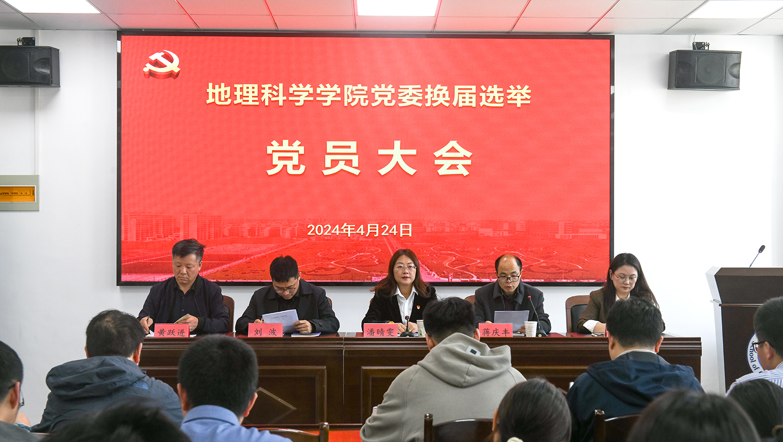 4月24日下午,地理科学学院党委召开换届选举党员大会。学院党委副书记、院长蒋庆丰主持会议。