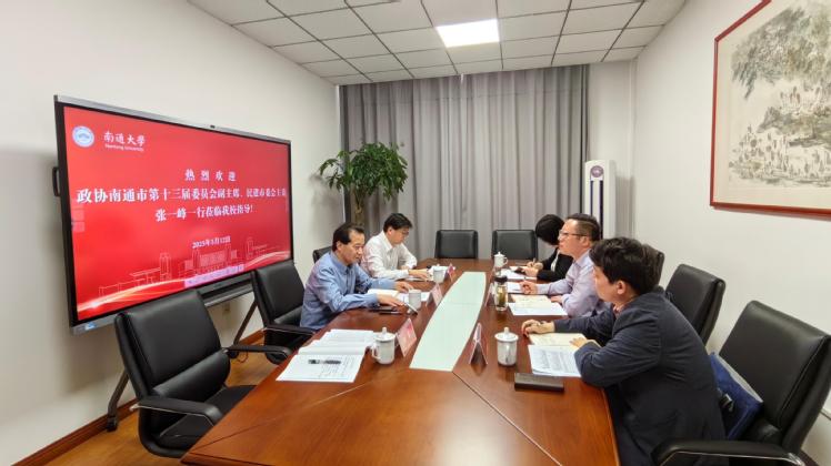 5月12日,南通市政协副主席、民建市委会主委张一峰一行来校交流。校党委副书记王卫东,校党委常委、统战部部长朱城出席座谈会。