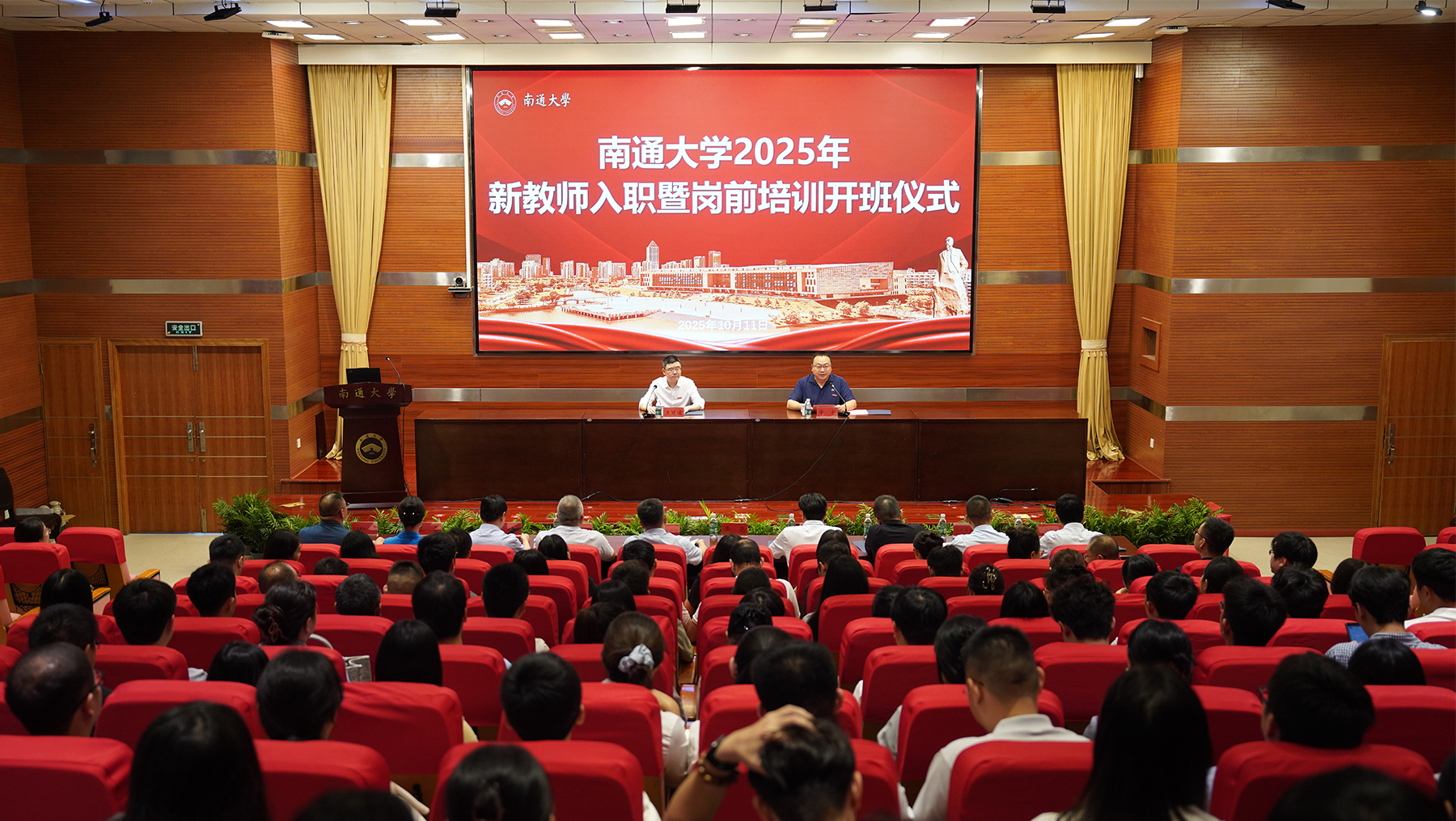 10月11日下午,我校举行2025年新教师入职暨岗前培训开班仪式。校长王建浦教授作开班动员,并以《立德树人,努力成为大先生》为题作首场讲座。校党委常委、副校长华亮主持会议。校党委常委、宣传部部长陶锋,校党委常委、统战部部长朱城出席仪式。