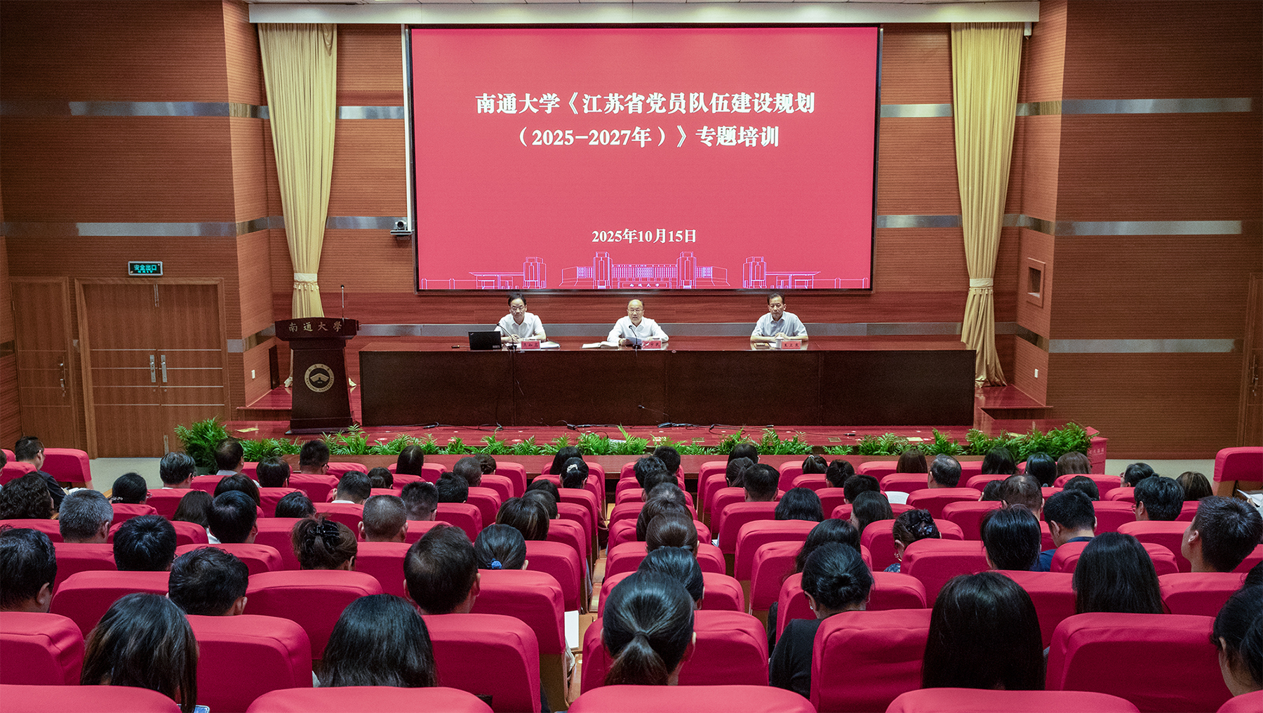10月15日,我校举办《江苏省党员队伍建设规划(2025-2027年)》专题培训。校党委书记杨宇民在培训会上讲话。校党委副书记王卫东出席培训会。校党委常委、组织部部长吴如高主持培训会并作专题讲座。