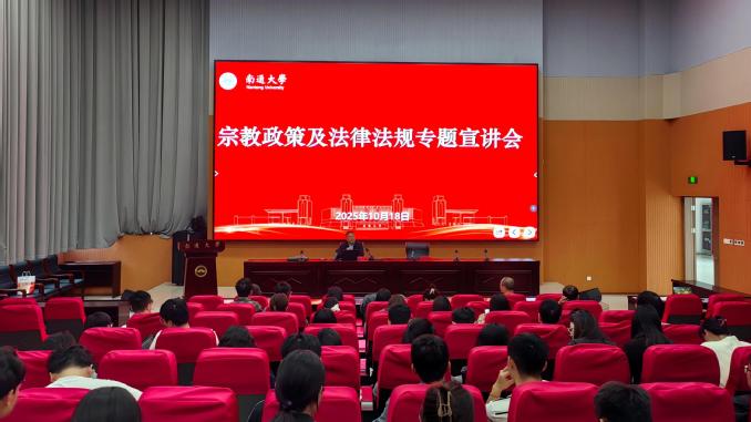 为进一步宣传贯彻民族宗教政策法规,提升师生政策法规意识,促进校园和谐稳定,10月18日,我校举办宗教政策及法律法规专题宣讲会。南通市民族宗教事务局政策法规处处长徐生旺应邀来校作专题宣讲。