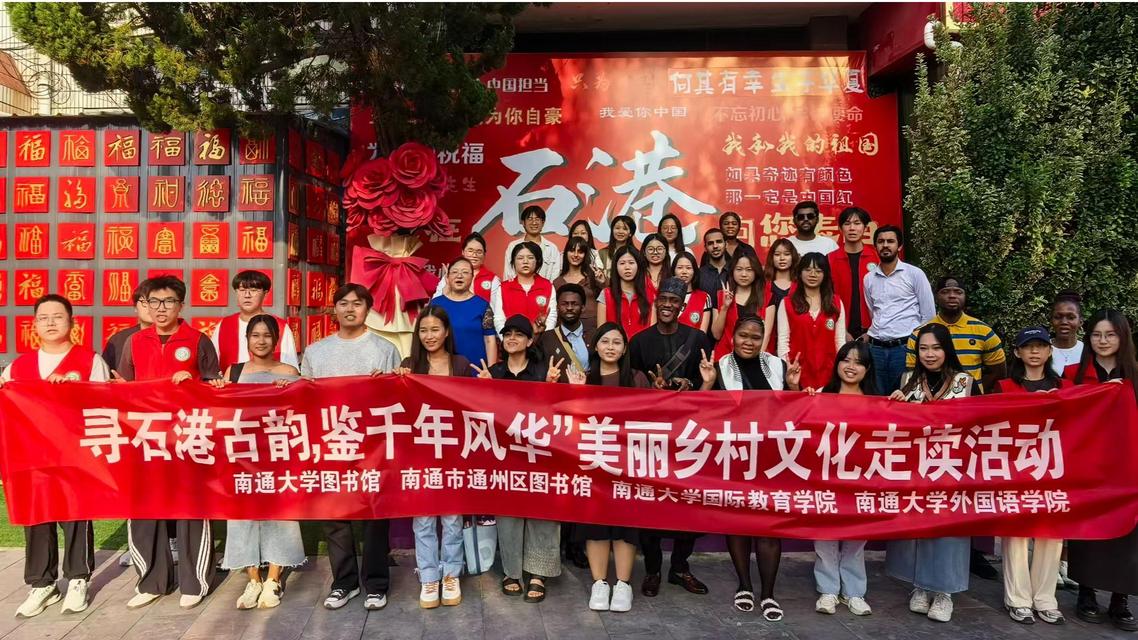 为深入贯彻落实乡村振兴战略,充分挖掘地方历史文化资源,推动校地文化资源融合育人,10 月17日,图书馆携手国际教育学院、外国语学院以及南通市通州区图书馆共同开展 “寻石港古韵・鉴千年风华”美丽乡村文化走读活动。师生代表走出校园、走进古镇,沉浸式感受石港镇的历史厚度与乡村振兴新貌,在行走中上了一堂生动的“乡村文化实践课”。