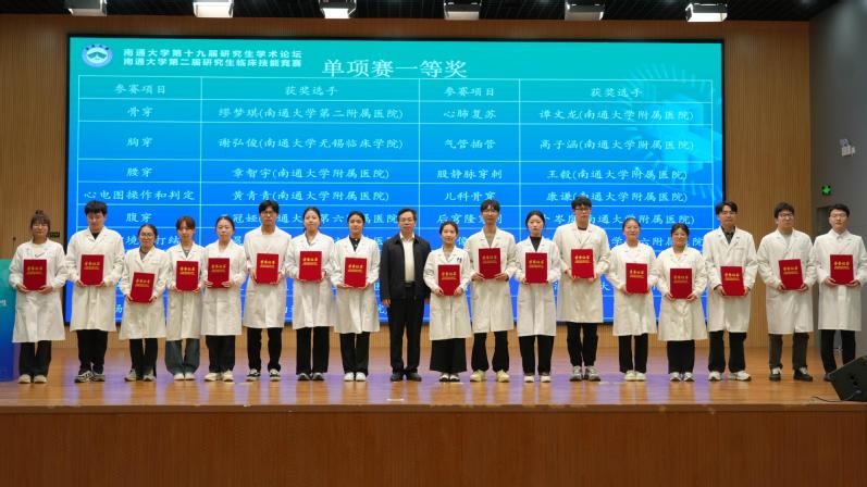 本次竞赛共有来自学校各附属医院及教学医院的10支代表队、220名研究生参加。竞赛涵盖基础临床操作和专项技能、临床急救技能团体赛、病例演讲比赛等18个项目,全面覆盖从基础操作到综合应用的临床医学全链条能力考核。经过激烈角逐,南通大学附属无锡临床学院代表队斩获团体一等奖,附属医院、第六附属医院代表队获团体二等奖,附属江阴医院、第二附属医院、附属常州儿童医院代表队获团体三等奖;缪梦琪等17人获单项一等奖,殷梓欣等37人获单项二等奖,杨雨等51人获单项三等奖。
