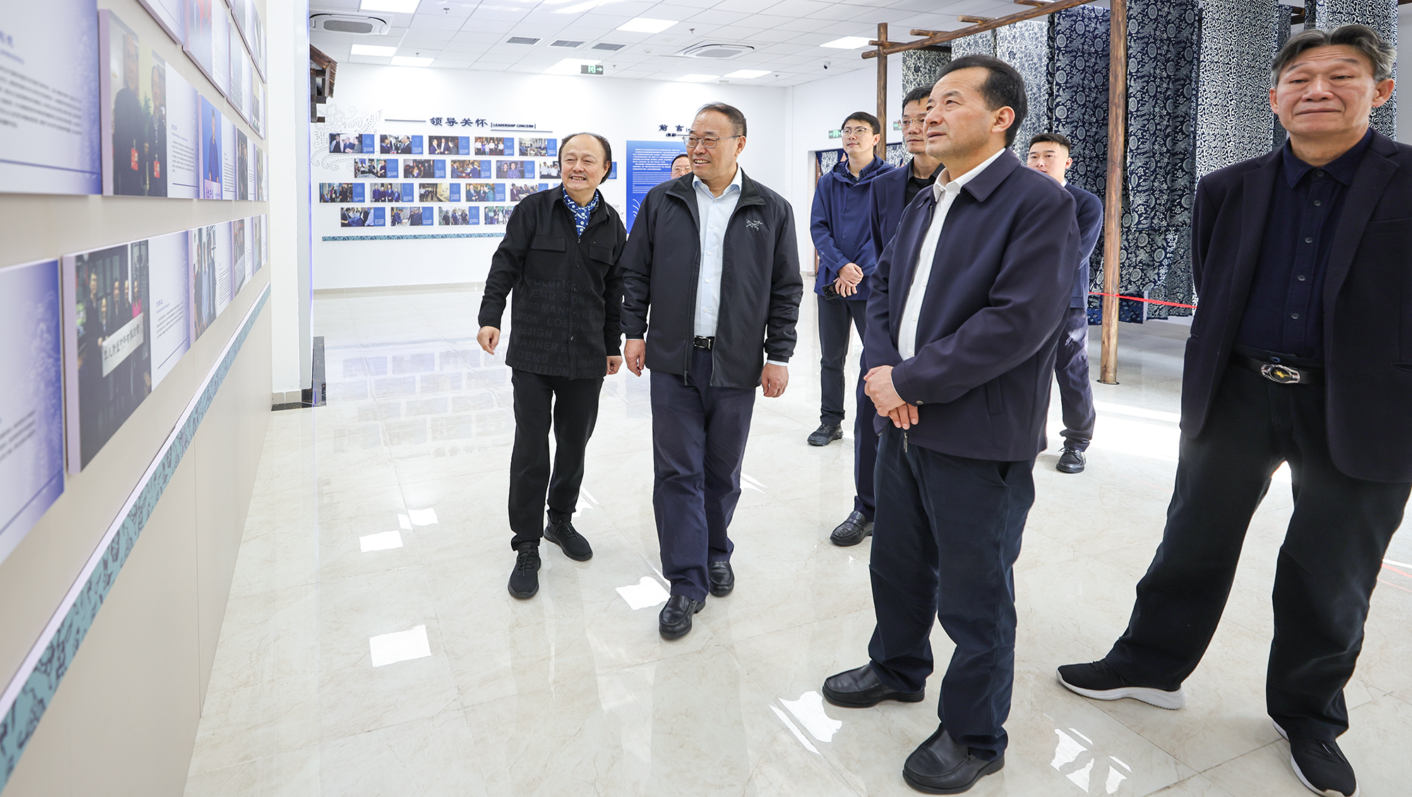 朱斌在认真听取汇报并实地察看后,对我校在非物质文化遗产特别是蓝印花布的传承、保护、研究及创新应用方面取得的突出成就给予高度评价。他指出,南通大学依托大师工作室和非遗研究院,在非遗高层次人才培养和活态传承方面探索出有效路径,形成了鲜明特色。他希望江苏省非物质文化遗产保护协会与南通大学进一步深化合作,建立更加紧密的协同机制,共同在非遗理论研究、传承人培养、创造性转化与创新性发展等方面凝聚更多智慧与力量,携手为江苏省非物质文化遗产保护事业的高质量发展作出新的更大贡献。